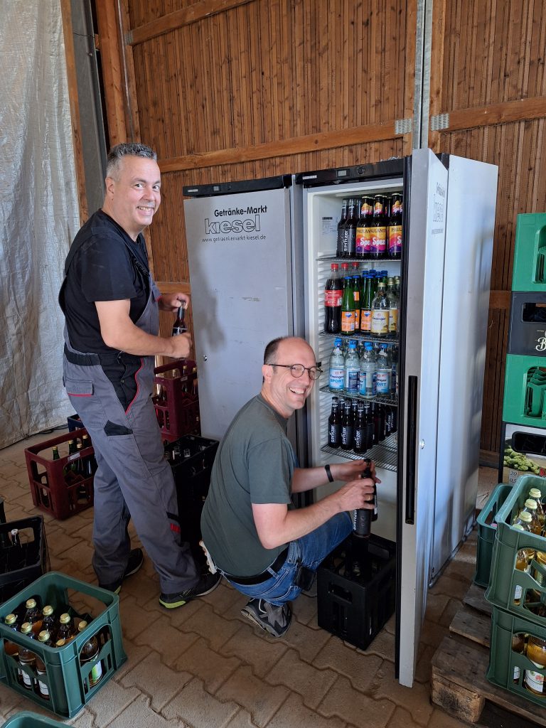 Der wichtigste Job beim Aufbau – Kühlschrank bestücken…